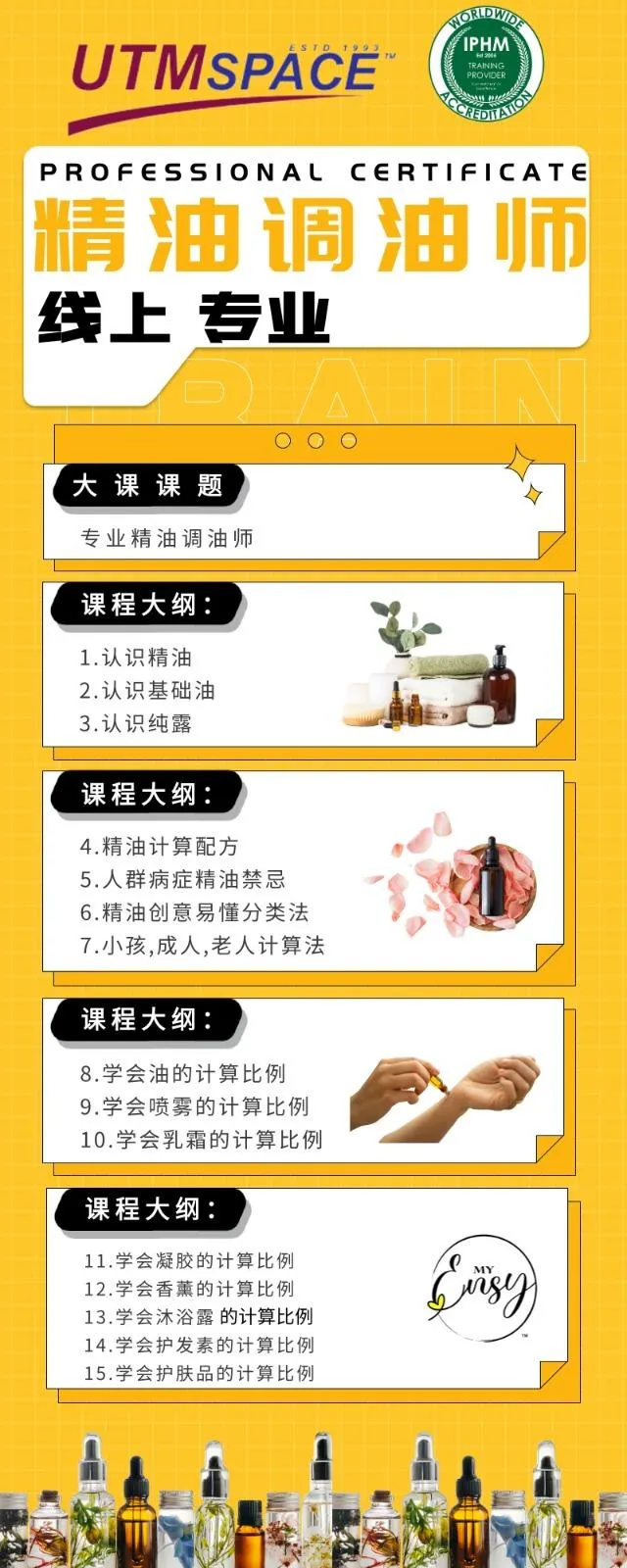 国际认可的专业认证:完成课程后,您将获得IPHM认证的调油师证书,为您在芳香疗法领域的职业发展提供有力支持。